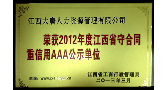 江西省人力資源服務機構(gòu)AA級誠信單位