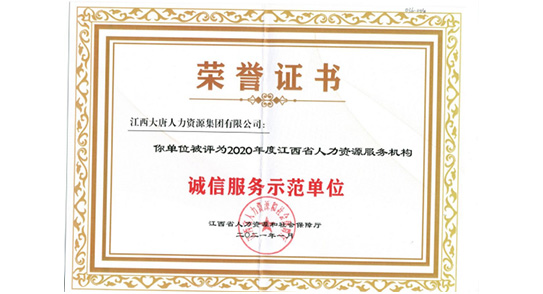 人力資源服務(wù)機(jī)構(gòu)誠(chéng)信服務(wù)示范單位