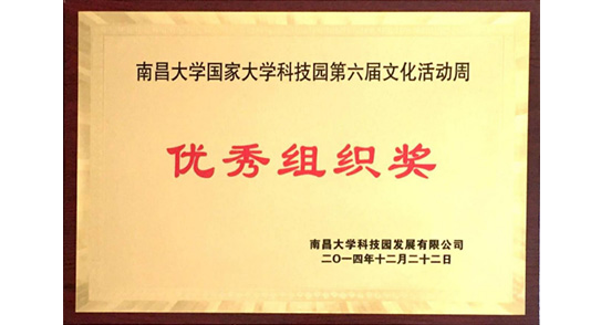 南昌大學(xué)國家大學(xué)科技園第六屆活動周優(yōu)秀組織獎(jiǎng)