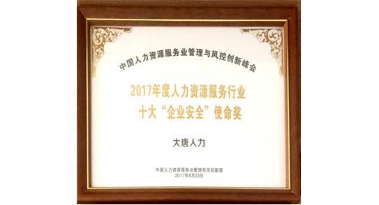 人力資源服務行業(yè)十大“企業(yè)安全”使命獎