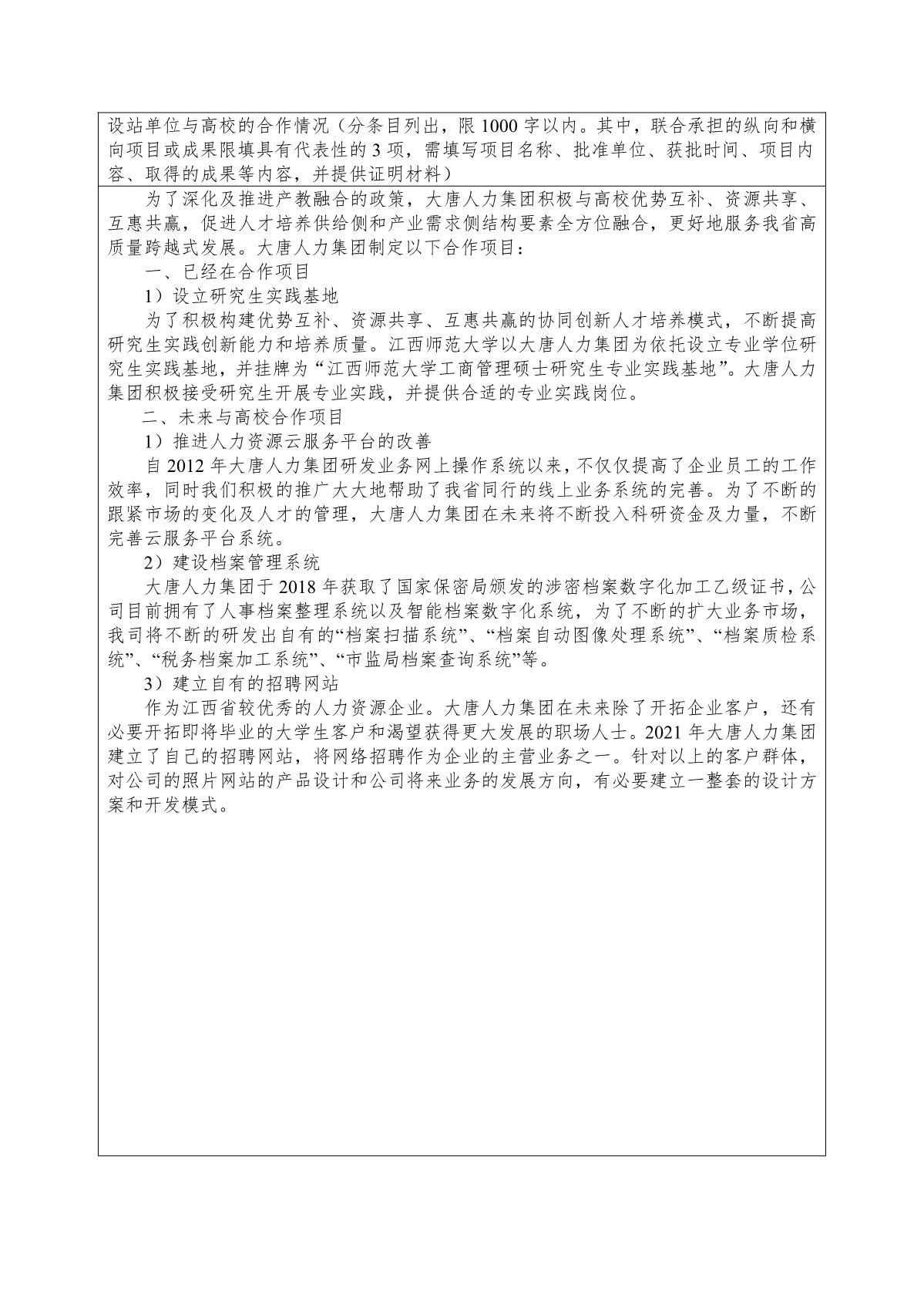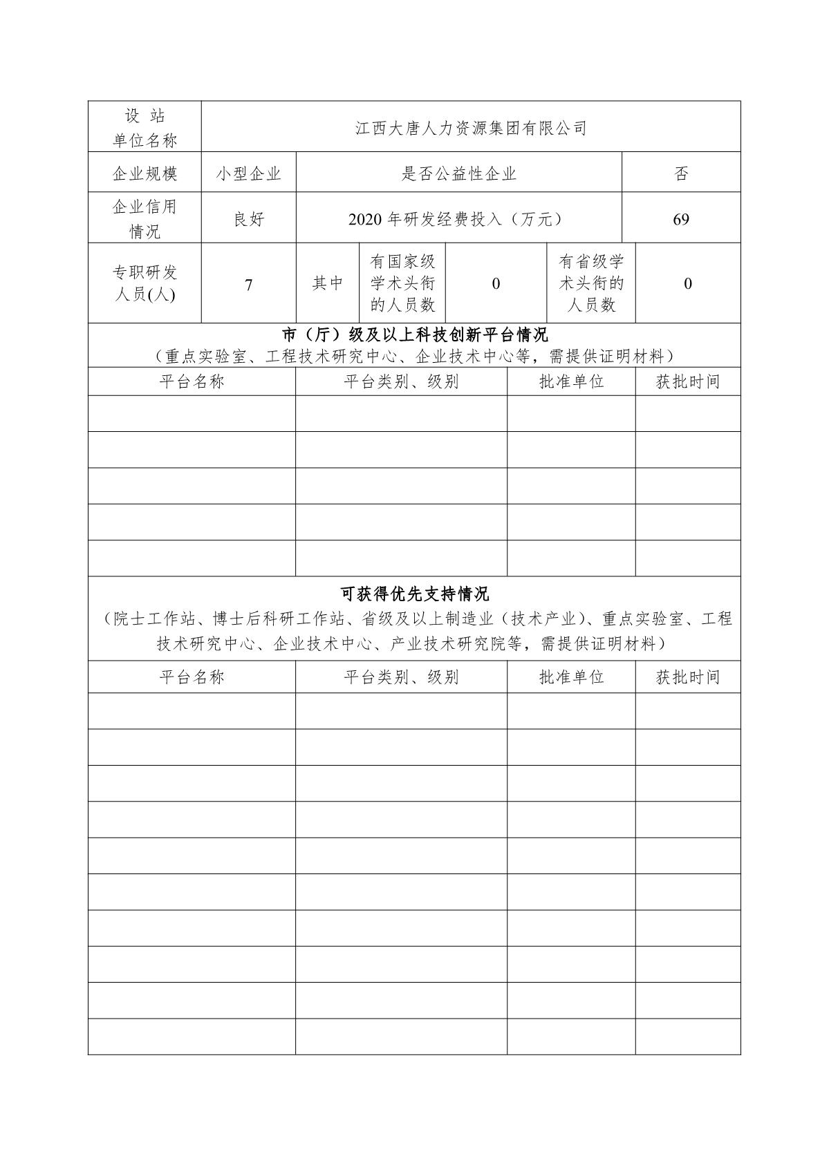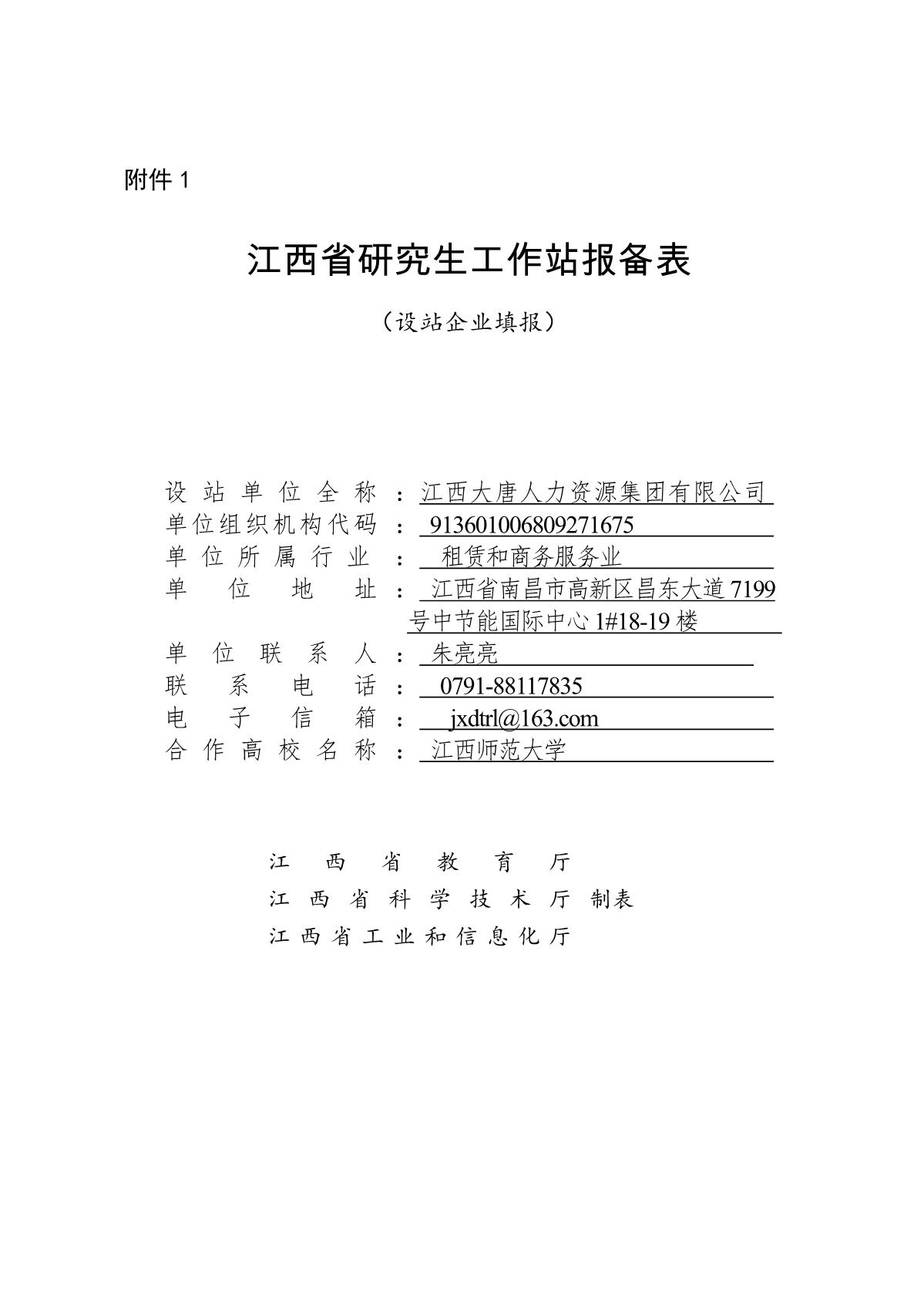 關(guān)于2021年度江西大唐人力資源集團(tuán)有限公司申報(bào)江西省研究生工作站的公示