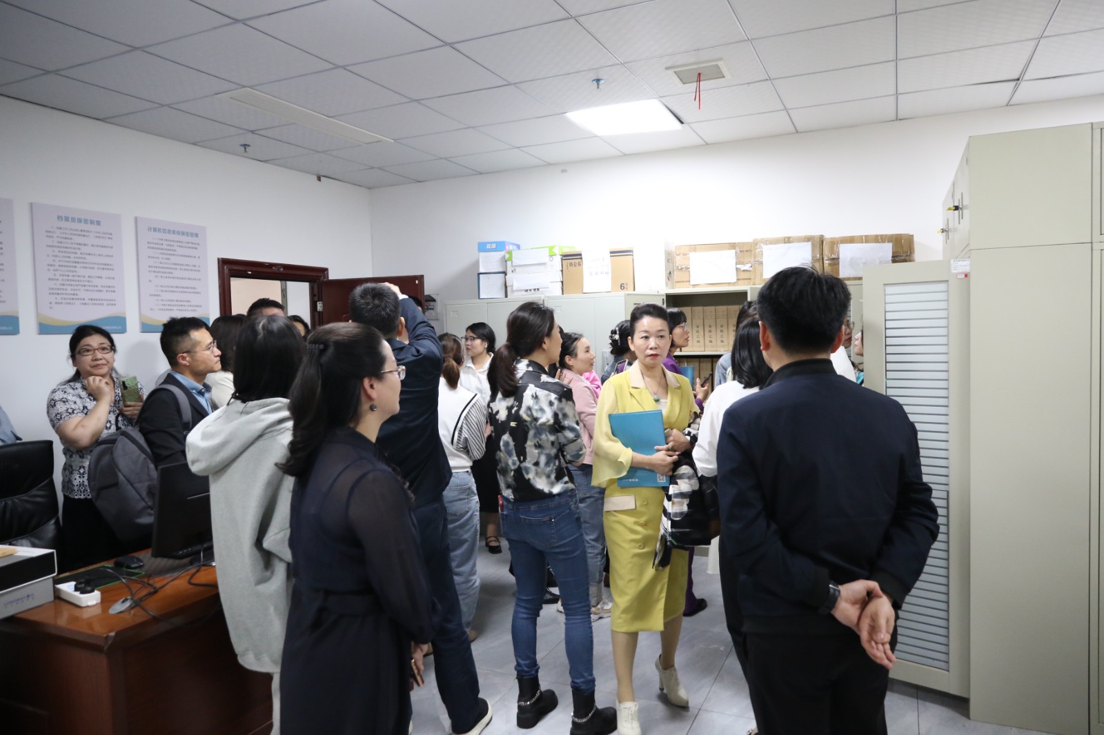 緊接著大家共同參觀了檔案室。余主任充分肯定了學(xué)校在臺賬管理方面的規(guī)范和嚴(yán)謹(jǐn)。